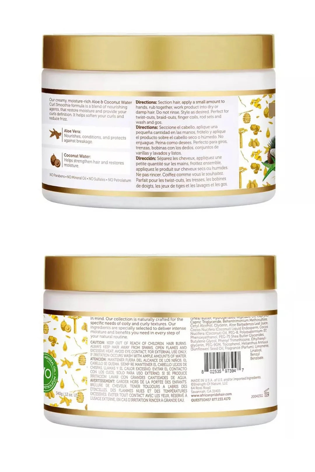 Coconut Water – Helps restore moisture and strengthen strands